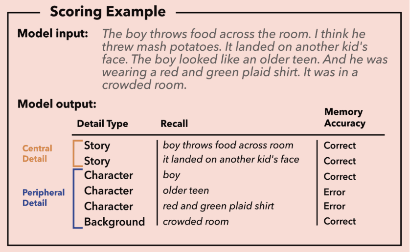 While the AI handles the categorization, human reviewers remain essential for the 'ground truth.' After the AI classifies a detail as a specific type, a human reviewer evaluates the AI’s output to score its accuracy, ensuring that the correct information is recalled from the original stimuli.